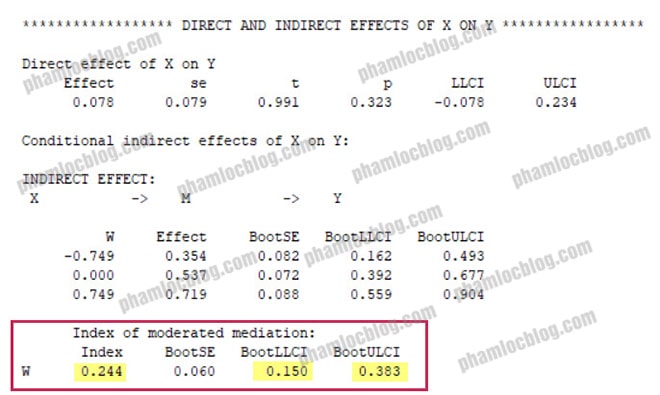 Tiêu chí kết luận moderated mediation có ý nghĩa